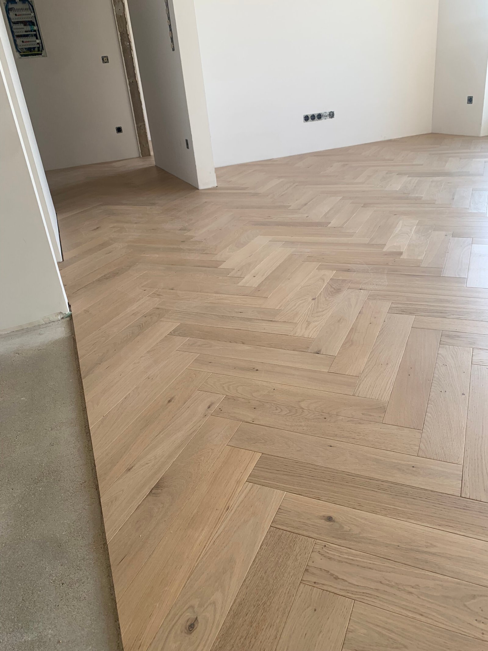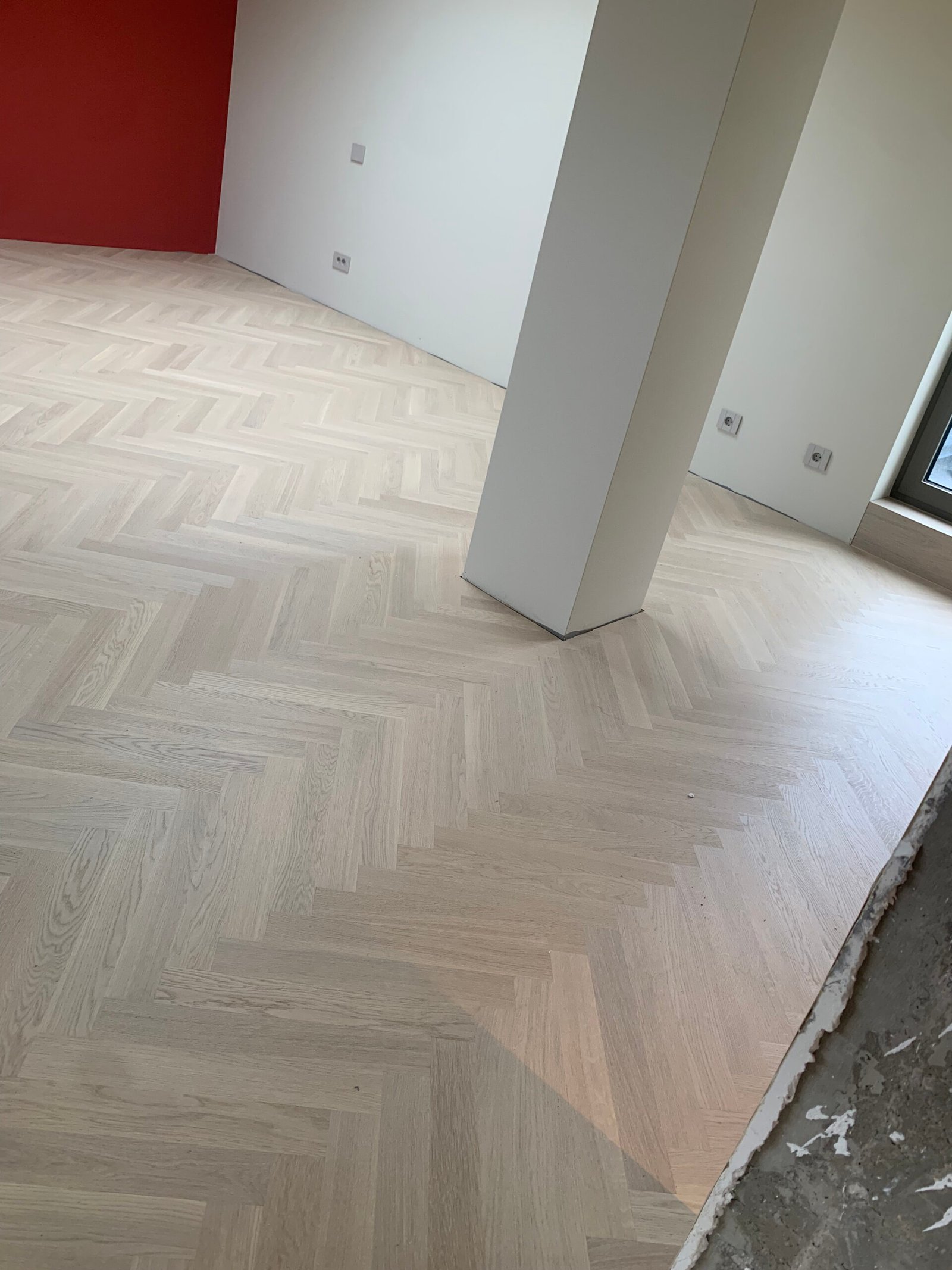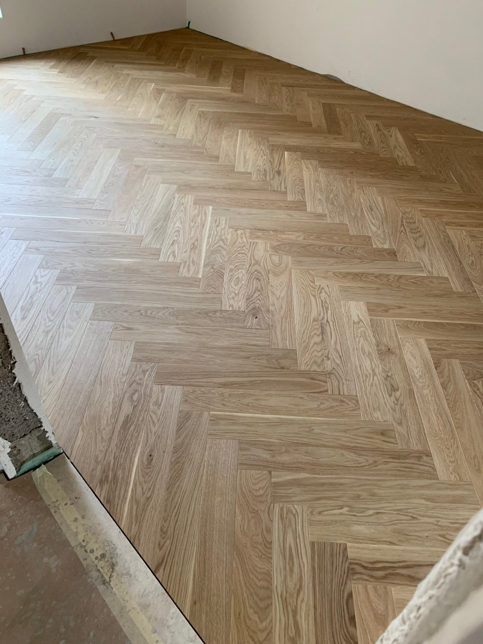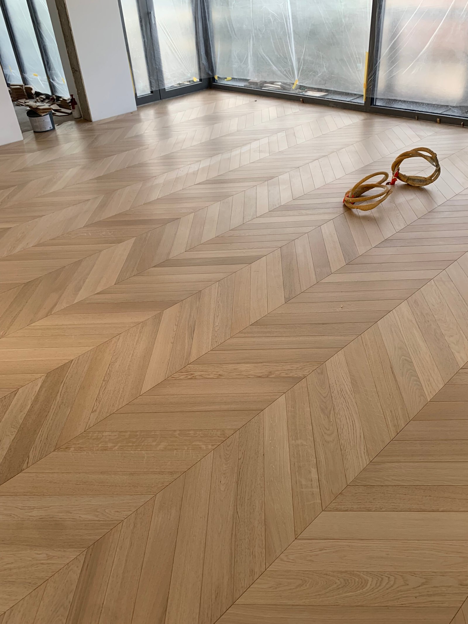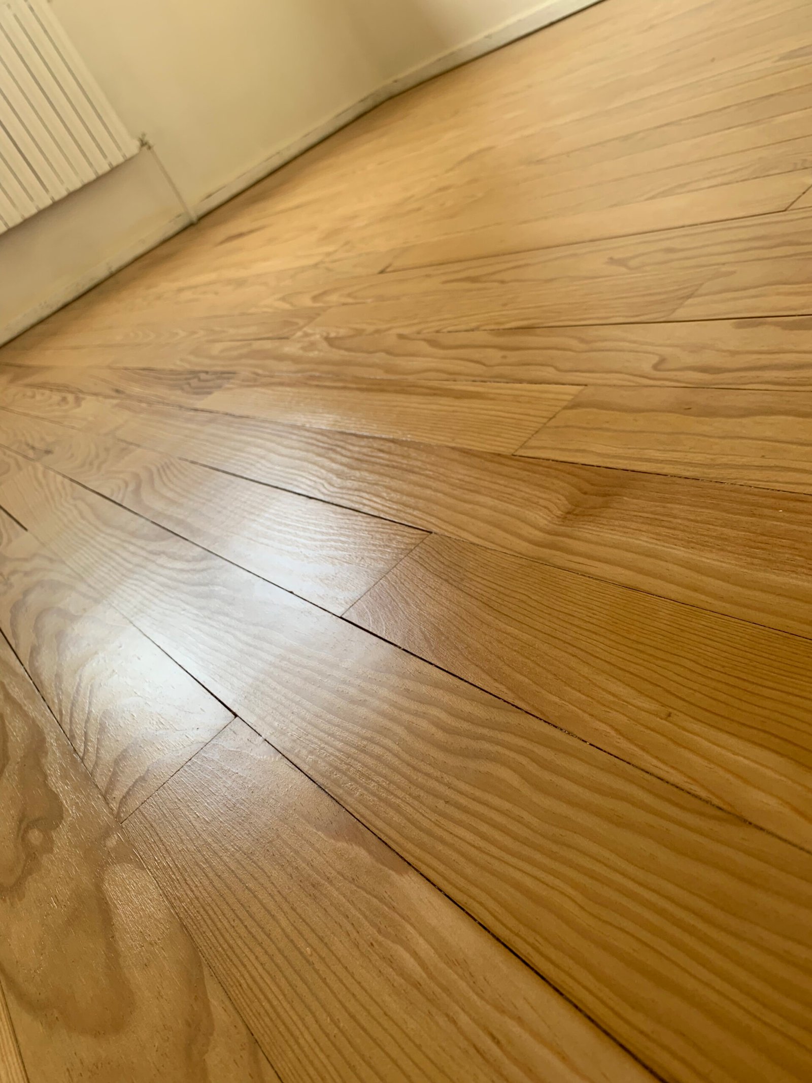 Rénovation d’un parquet en chêne en bâton rompu avec finition semi-mate